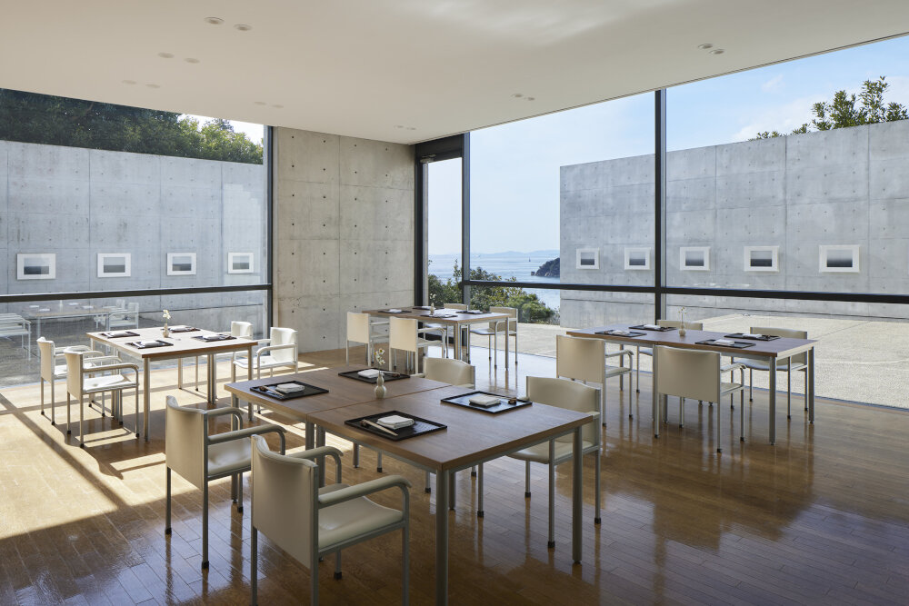 This cafe is on the second floor of Benesse House Museum. Natural light pours into the interior through large windows facing to the south and west, allowing you to enjoy a leisurely light meal or beverage while gazing out at the Inland Sea below.