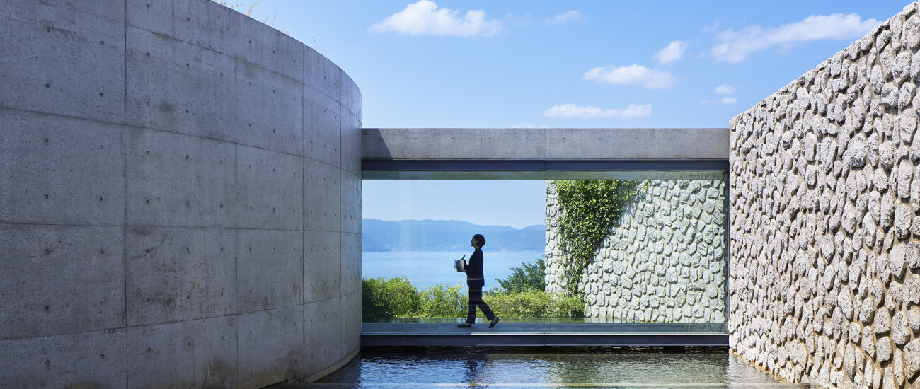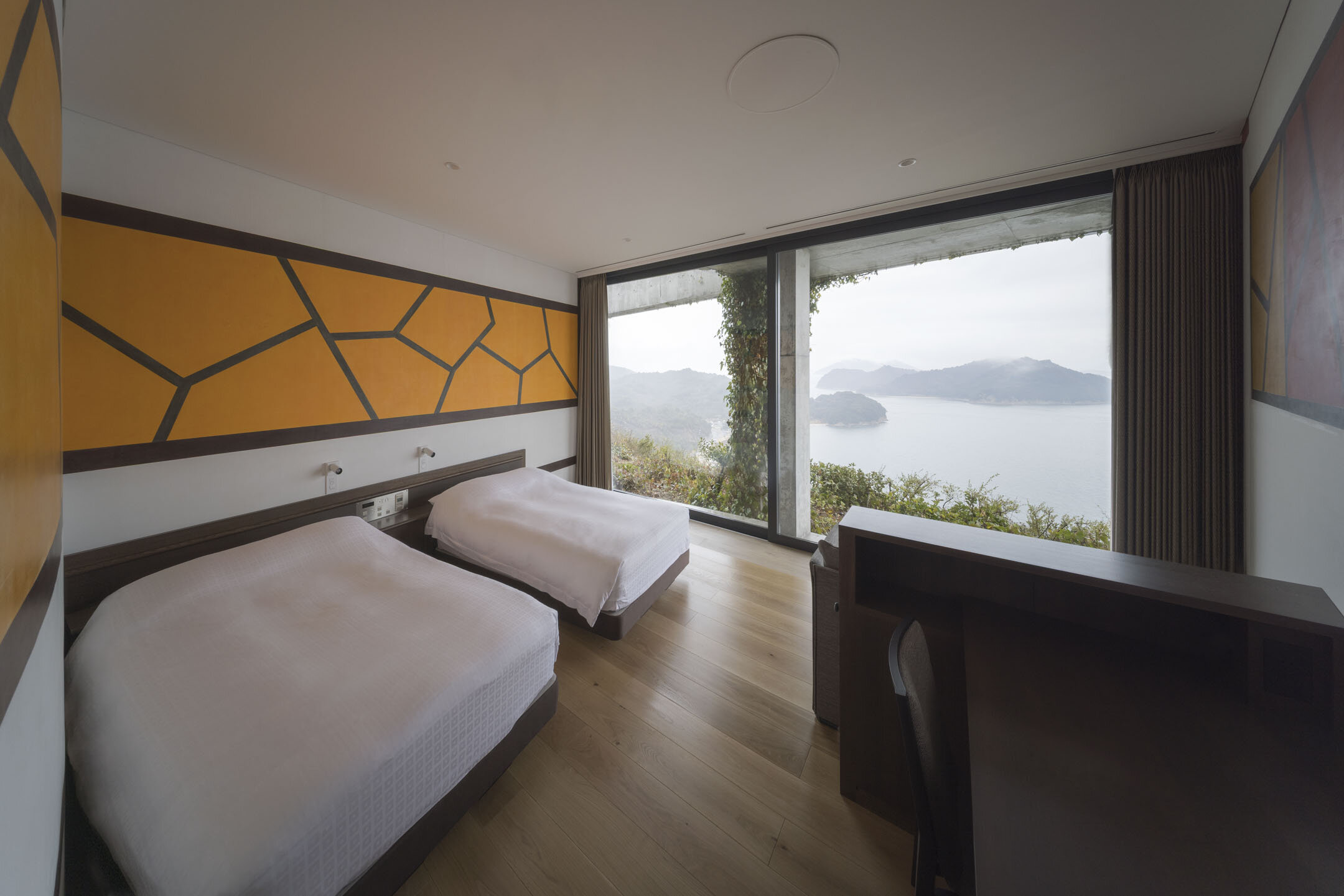 Standing on a hill and reached by monorail from the museum, this space has just six guestrooms, featuring a fusion of Setouchi's natural beauty with Ando's architecture. Vast floor-to-ceiling windows in the guestroom offer a sweeping view of the Inland Sea, and the walls of some of the guestrooms are decorated with drawings created by the artists.