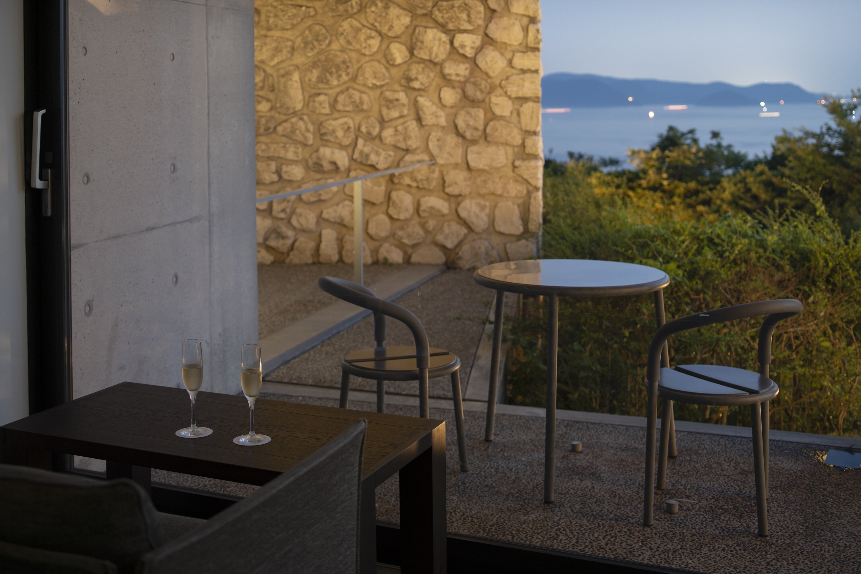 ベネッセハウス4棟の中で、最も高い場所にある客室です。客室に備わる大きな開口部からは、眼下に広がる瀬戸内の自然を室内に居ながら感じられる設計になっています。